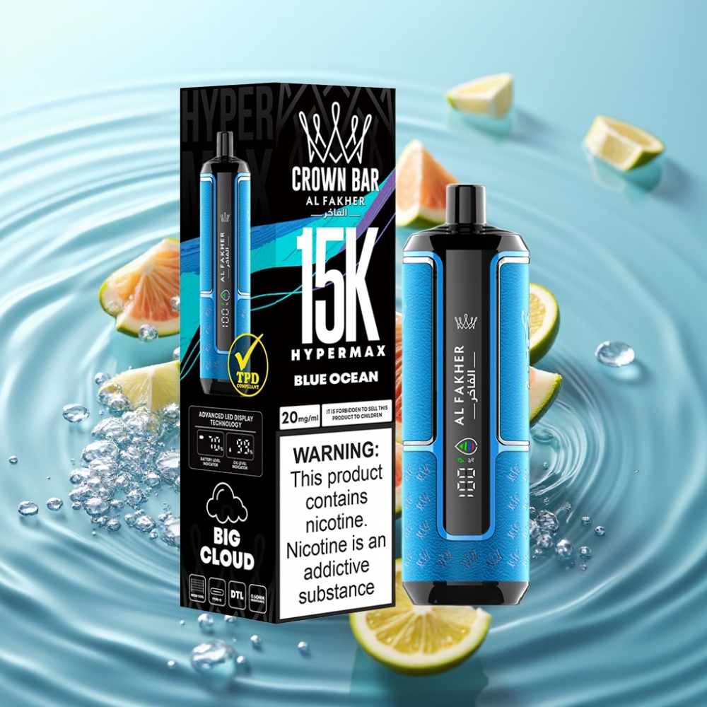 Al Fakher Crown Bar 15K Hypermax Desechable Kit Vape Azul Océano 22ml 600mAh